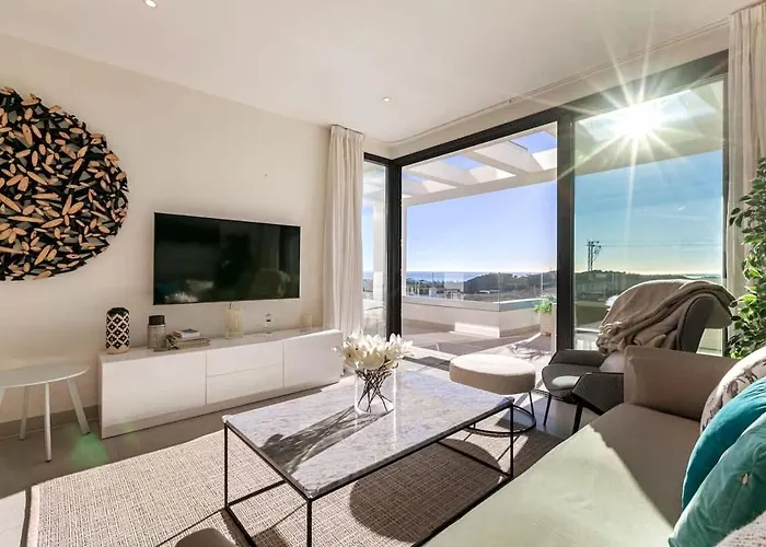 Overlooking the sea, the spacious Duplex Penthouse With Sea Views, Steps To Golf Apartment Estepona is 4.8 km from the Palaeontology Museum of Estepona in Estepona. Guests can take advantage of a swimming pool or a fitness studio while staying right near the hole Estepona Golf.